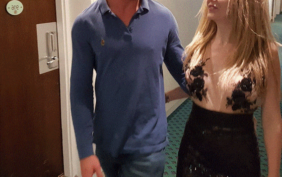 Horny slut jumped on stranger behind the doors