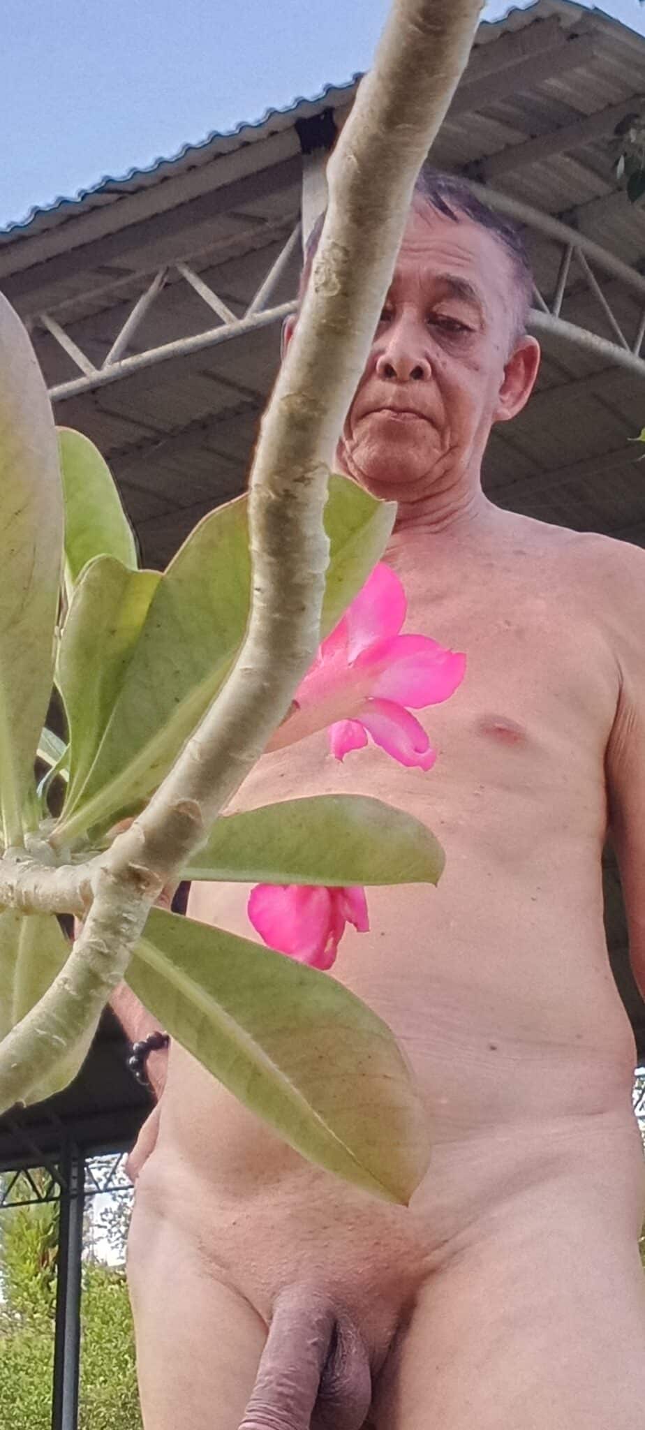 Asian naked guy with cock out