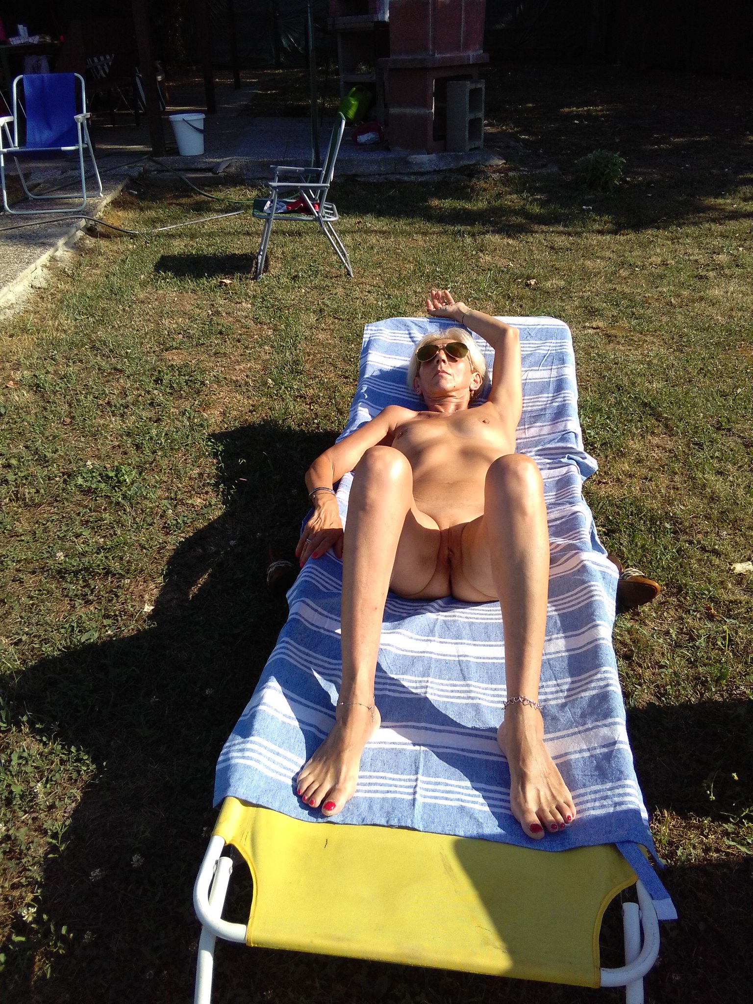 The environment plays a crucial role in framing her nudity. The teal pathway curves around her, bordered by low shrubbery and garden plants, creating a natural, almost serene backdrop. Behind her, a parked white vehicle adds a touch of reality to the scene, grounding it in everyday life. The camera angle, low and looking up, frames her figure perfectly, emphasizing her boldness. Kiara's nudity is not just a display; it's a declaration of her comfort and confidence in her own skin, making the scene both provocative and empowering.