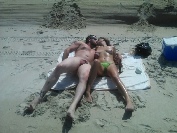 Nude beach couple posing for a picture…