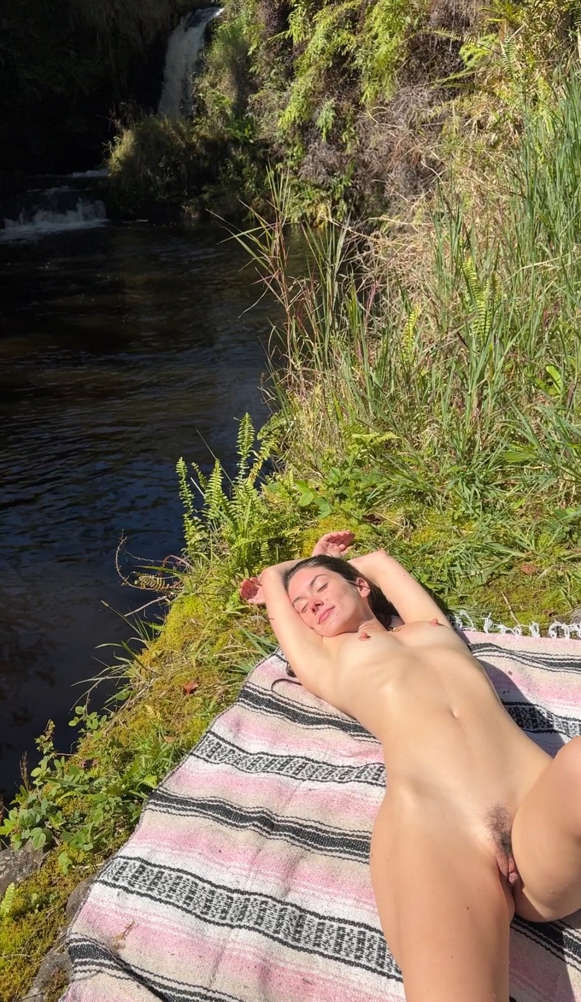 Busty Old Slut Sunbathing Fully Naked In Grass