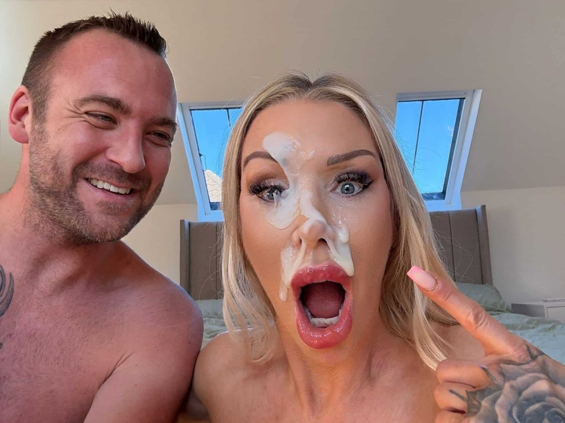 Dee with cum all over her tits and face